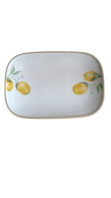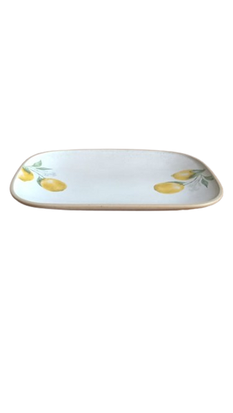 A Rectangular Platter in white glossy glaze with Limon design. Measurements 33.5x 23 x 3 cm