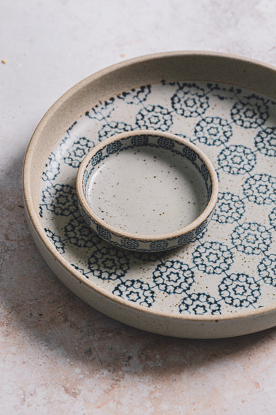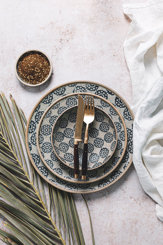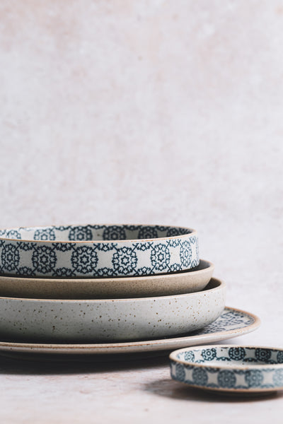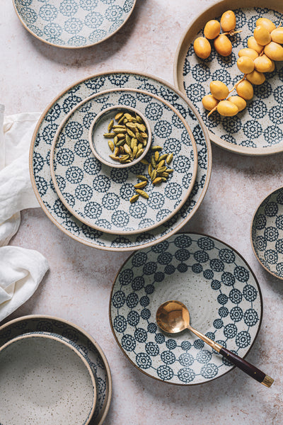 past times. It combines a strong repeat floral design with a rustic and natural exterior to showcase the boldness and vibrancy of the food. The range is designed to be mix and matched with other designs in the collection to allow for endless presentation opportunities.